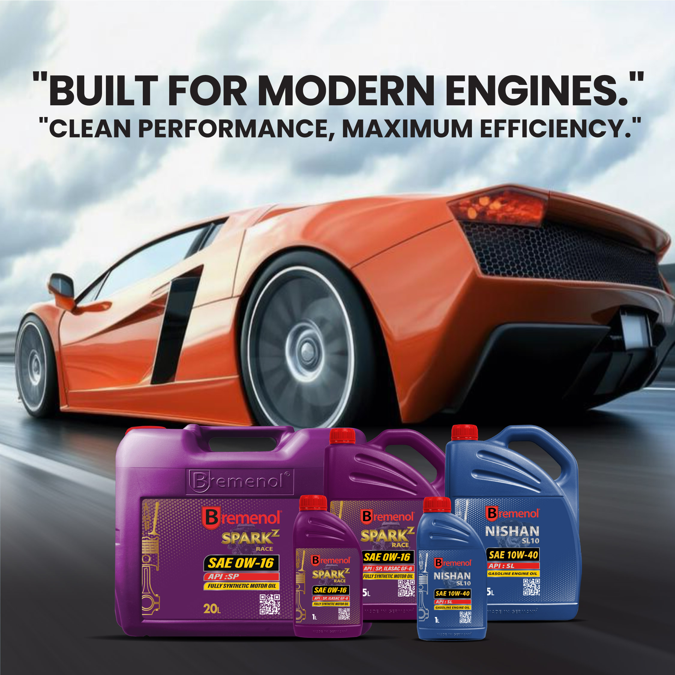 We make gasoline engine oil from synthetic base stocks, mineral oils with a super high viscosity index, and multifunctional additives. Bremenol’s high-quality petrol engine oil satisfies the demands of new-generation passenger and racing cars.