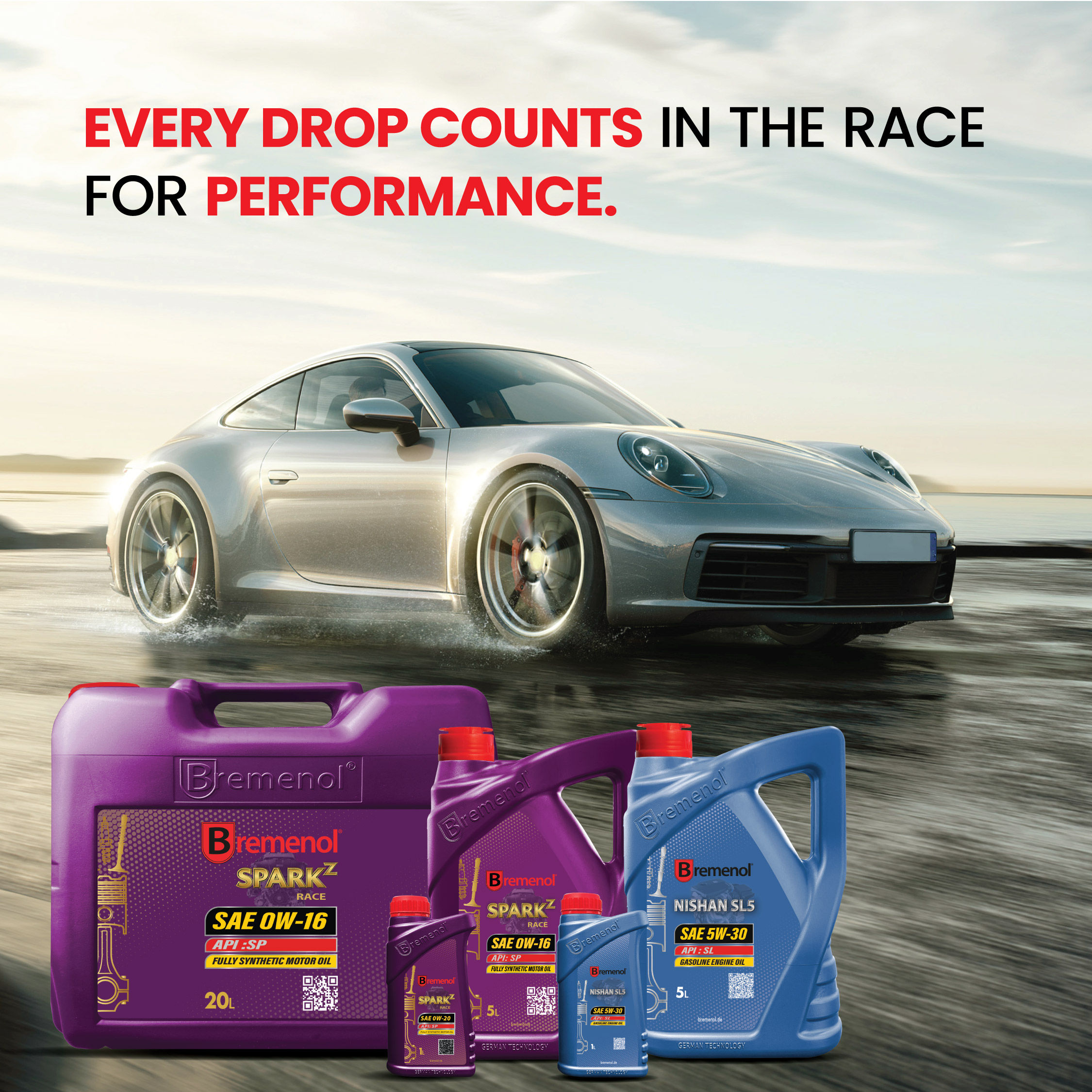 We make gasoline engine oil from synthetic base stocks, mineral oils with a super high viscosity index, and multifunctional additives. Bremenol's high-quality petrol engine oil satisfies the demands of new-generation passenger and racing cars.